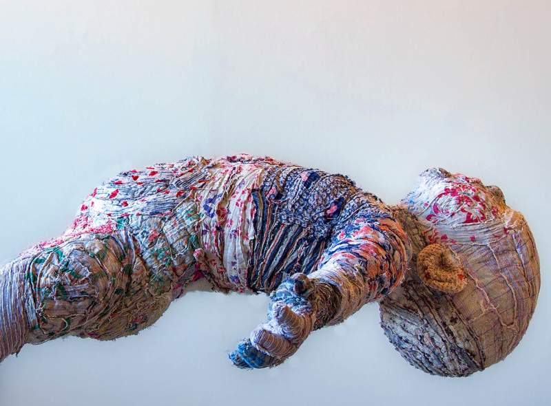 I utställningen får vi se en serie textila skulpturer som behandlar tid, minnen och människans längtan efter mening och helighet i en sekulär samtid.