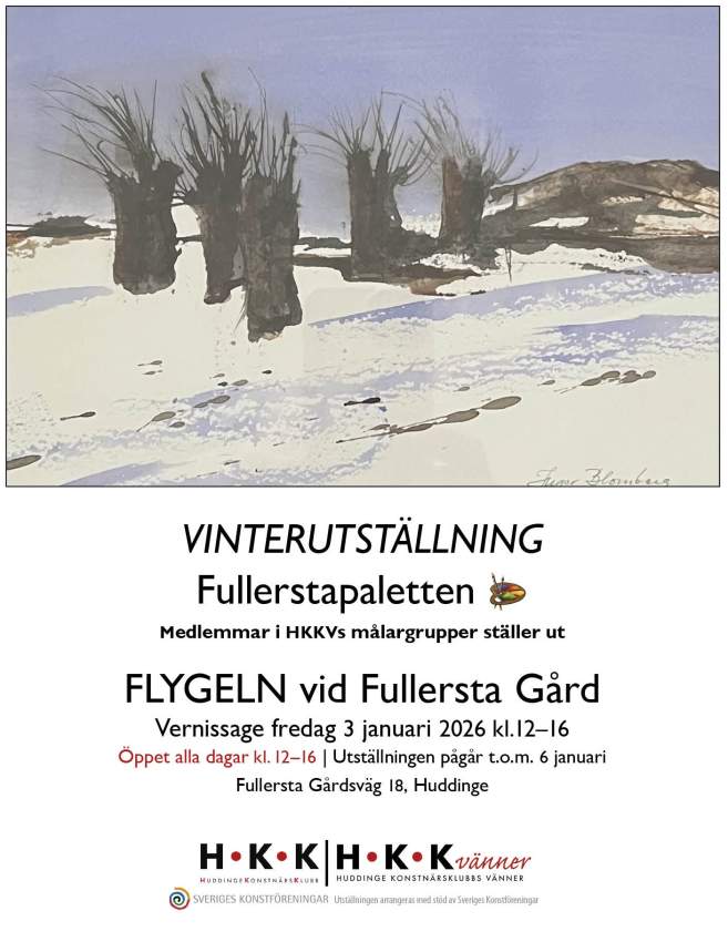 HKKV Fullerstapaletten, Vinterutställning Måleri, grafik och emalj på glas. Öppet alla dagar 12–16.