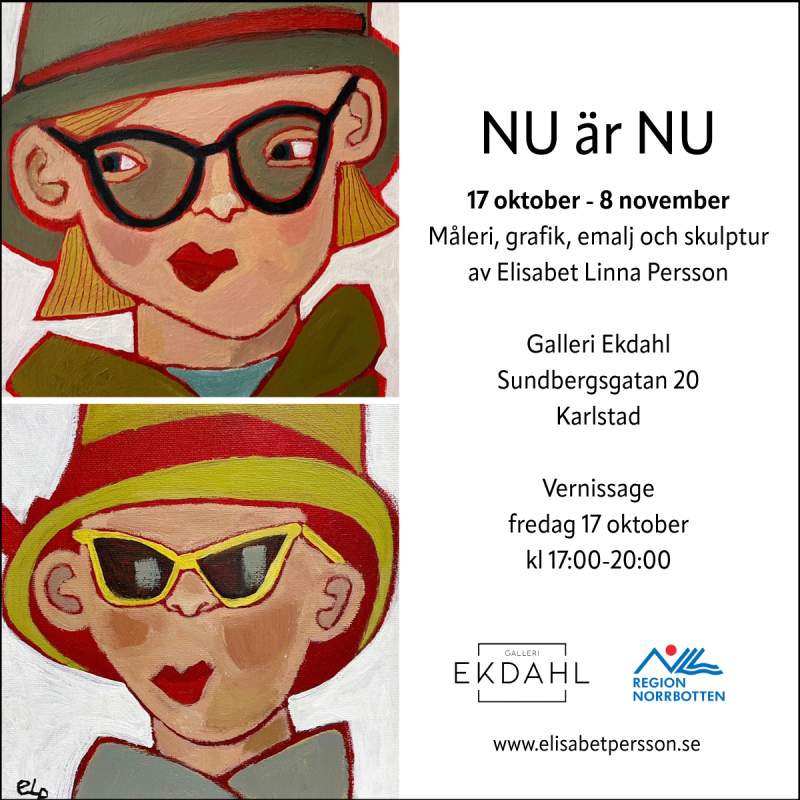 Galleri Ekdahl, Sundbergsgatan 20, Karlstad, 072 0391 391, Öppet: fre 12–17, lör 12–15.
